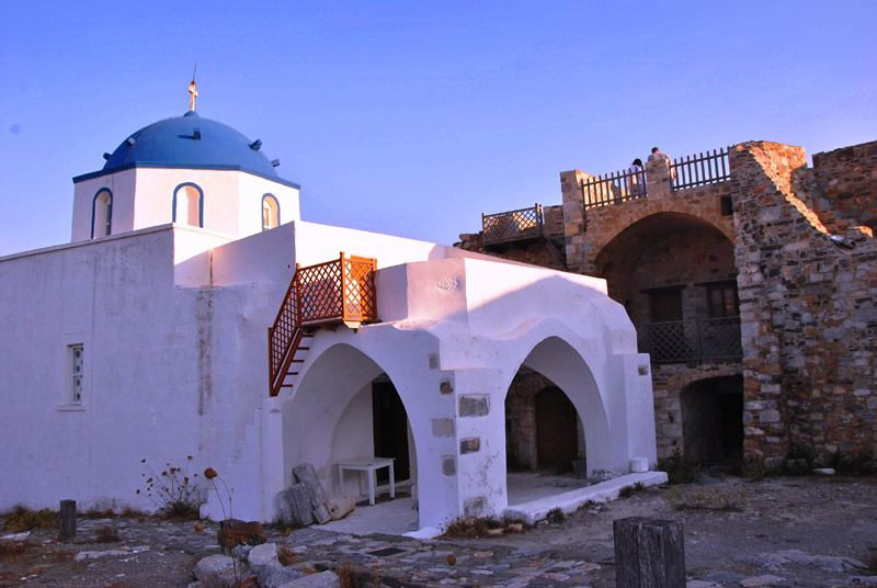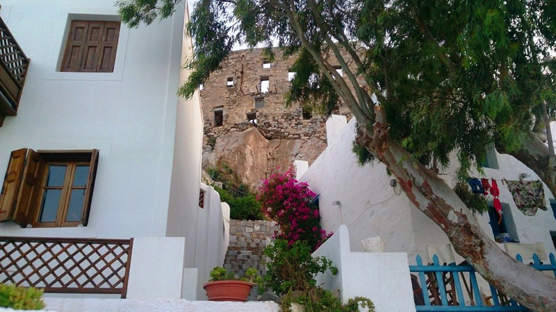Η χώρα που ξαπλώνει κάτω από το ενετικό κάστρο, μοναδικό στο είδος του με τέλεια αρχιτεκτονική, μέχρι τον 19ο αιώνα αποτελούσε τον μοναδικό οικισμό του νησιού. Όλα τα σπίτια έξω από αυτό τα έλεγαν σταύλους. Την σημερινή μορφή του την πήρε το 1413 με την ανακατασκευή του Τζιοβάνι IV Κουϊρίνι, από την οικογένεια των Κουϊρίνι που θεωρείται από τους ιδρυτές της Βενετίας. Από το 1930 και μετά άρχισαν να κατασκευάζονται σπίτια έξω από το κάστρο και να μετατρέπονται οι σταύλοι σε σπίτια προσθέτοντας νέους χώρους ή ορόφους, τα επονομαζόμενα ξώκαστρα. Στο εσωτερικό του κάστρου υπήρχαν περίπου 400 σπίτια, όλα τριώροφα και κτισμένα κολλητά το ένα με το άλλο, με στενά δρομάκια που μόλις χωρούσε να περάσει άνθρωπος, αλλά και με ένα υποδειγματικό αποχετευτικό σύστημα, άξιο μελέτης που «φρόντιζε» για την υγεία των κατοίκων.