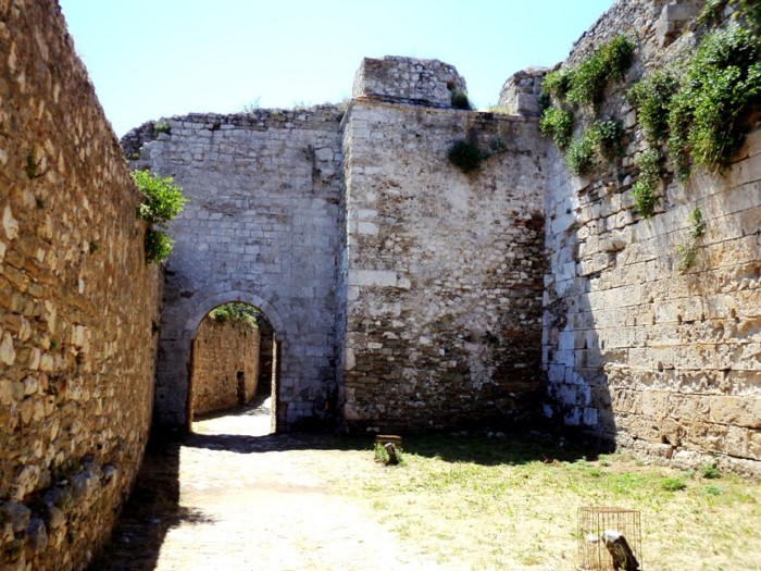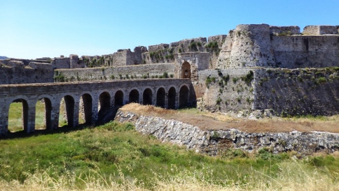 Η πέτρινη γέφυρα από δεκατέσσερα τόξα, χτίστηκε πάνω από την τάφρο από τους τεχνικούς της Expedition scientifique de Μοree, που συνόδευε τον στρατηγό Μαιζόν, το 1828. Αριστερά και δεξιά της εισόδου διατηρούνται οι δυο μεγάλοι προμαχώνες, ενώ στη δυτική άκρη βρίσκεται ο προμαχώνας Bembo, που χτίστηκε στη διάρκεια του 15ου αιώνα.