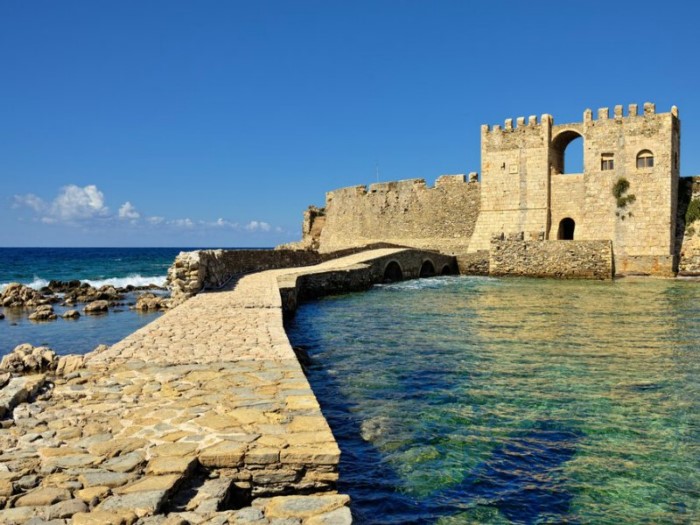 Το κάστρο της Μεθώνης δεσπόζει επιβλητικό στο νοτιοδυτικότερο άκρο της Πελοποννήσου.