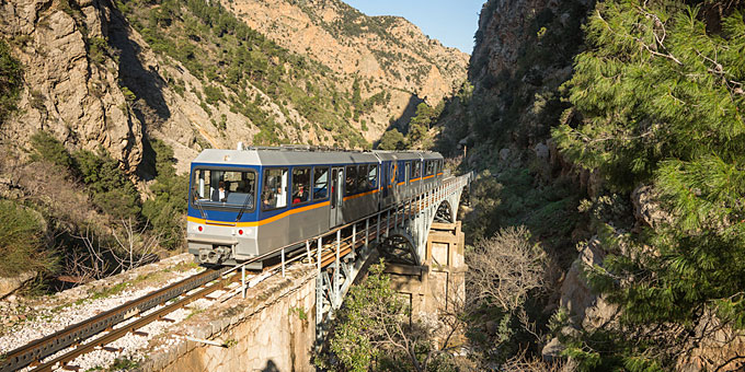 …που κοιτάζει… από χαμηλού το καταπράσινο φαράγγι από τα βάθη του, σε μια υπέροχη περιοχή με δεκάδες γεφύρια και τις ράγες του Οδοντωτού, μια αναζωογονητική σιδηροδρομική βόλτα πάνω από το Βουραϊκό που θα σας αφήσει με το στόμα ανοιχτό.