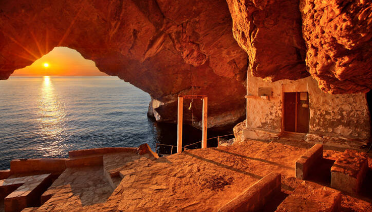 Ο λόγος για το μικρό, καθολικό παρεκκλήσι του Αγίου Στεφάνου. «Σφηνωμένο» ανάμεσα σε βράχους μέσα σε μια σπηλιά, σχεδόν πάνω στη θάλασσα.