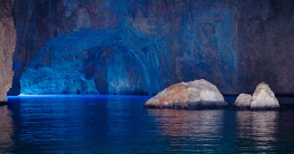 Στα νότια του νησιού, βρίσκεται ένα από τα εντυπωσιακότερα φυσικά μνημεία της Μεσογείου το οποίο είναι παγκοσμίως γνωστό για το σταλακτικό του πλούτο αλλά και για τα καταγάλανα νερά του.