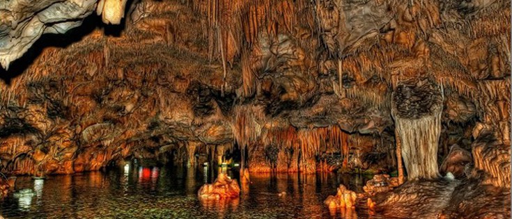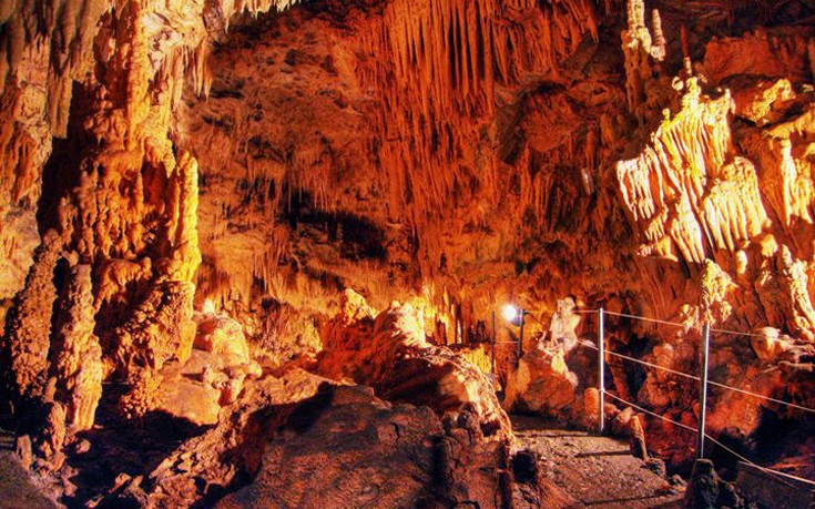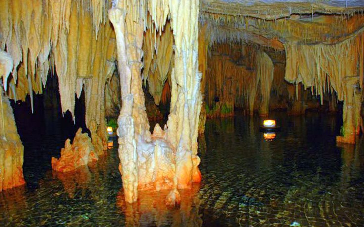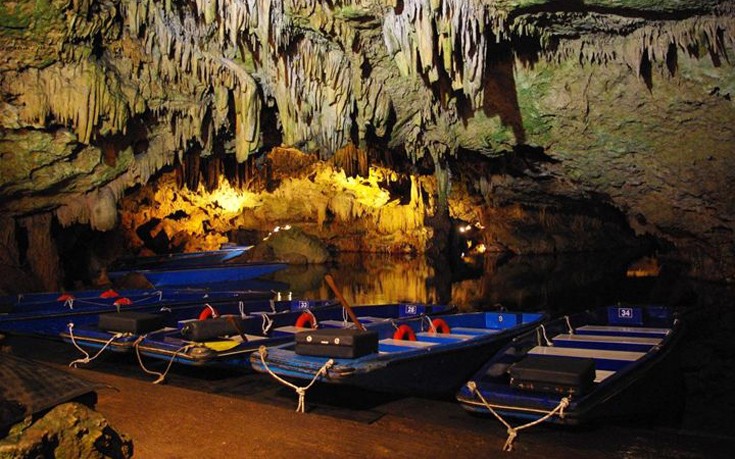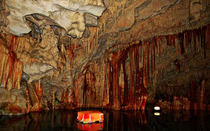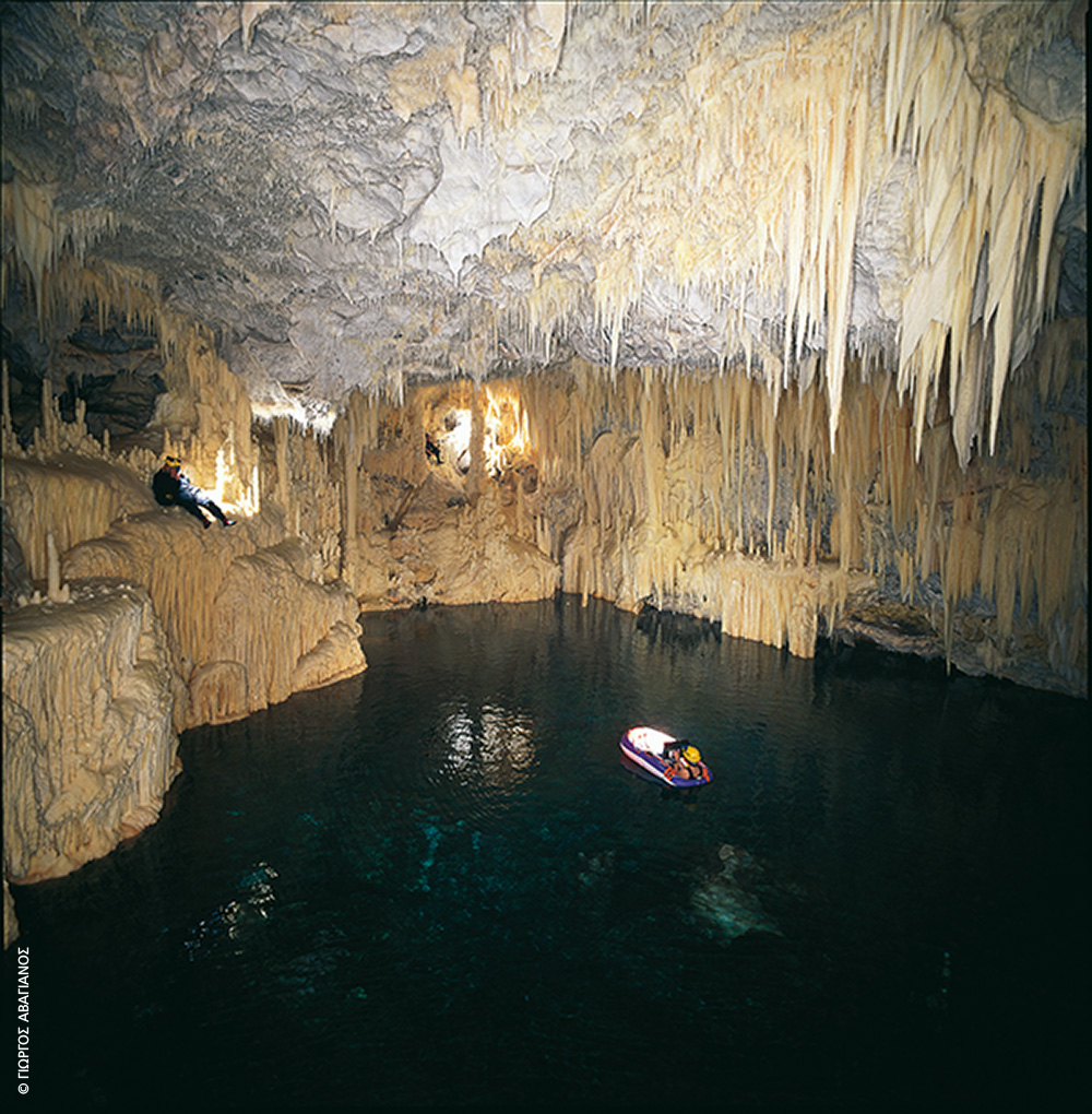 Κομμάτια της ιστορίας ξεδιπλώνονται μπροστά στα μάτια του επισκέπτη πάνω στους σχηματισμούς που κάνουν οι σταλακτίτες και οι σταλαγμίτες. Ο μυστηριακός φωτισμός και οι εικόνες μοναδικές μένουν αξέχαστες ενώ η κλασική διάσχιση του σπηλαίου με τις βάρκες περνάει από διάφορους θαλάμους και στοές με μυθικά ονόματα όπως: Πρώτη Σάλα, Νεκρή Πολιτεία, Σταυροδρόμι με τις Νηρηίδες, Λίμνη των Ωκεανίδων, Ροζ και Λευκή Σάλα, Θάλασσα των ναυαγίων, Χρυσή Βροχή και τον Μεγάλο Ωκεανό.