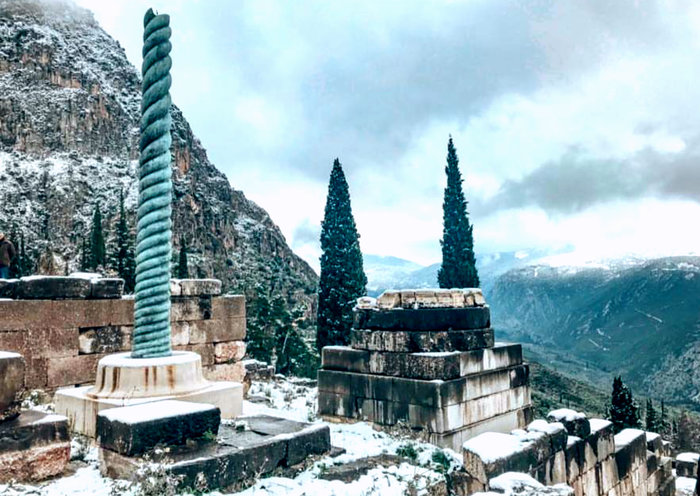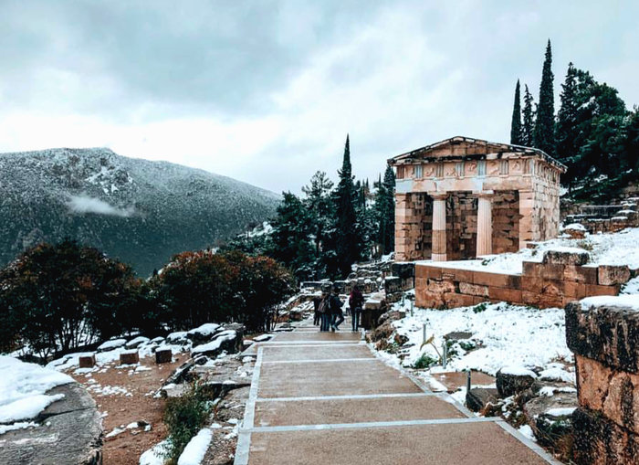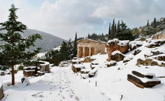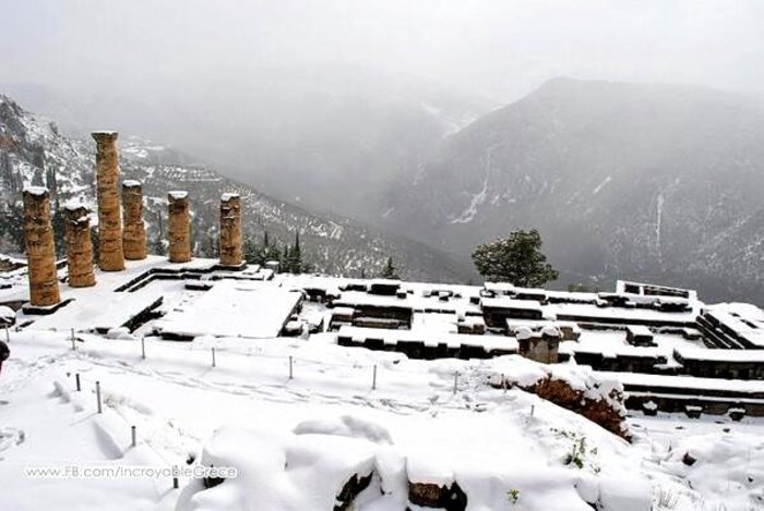 Οι εικόνες αυτές δεν είναι μόνο από τη φετινή «επίσκεψη» του χιονιά στο πανέμορφο δελφικό τοπίο, αλλά και από άλλες «επισκέψεις» που έχει κάνει σε διαφορετικές χρονιές περιόδους στον αρχαιολογικό χώρο ο οποίος βρίσκεται στους πρόποδες του Παρνασσού και θεωρούνταν ως Ομφαλός ης Γης από τους αρχαίους ΄Ελληνες.