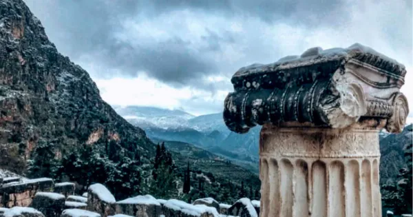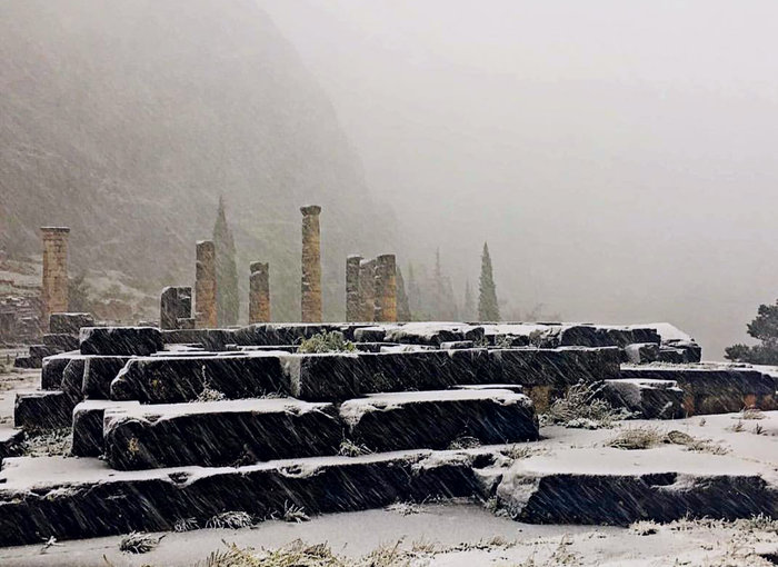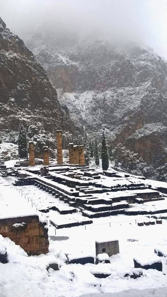 Οι εικόνες αυτές δεν είναι μόνο από τη φετινή «επίσκεψη» του χιονιά στο πανέμορφο δελφικό τοπίο, αλλά και από άλλες «επισκέψεις» που έχει κάνει σε διαφορετικές χρονιές περιόδους στον αρχαιολογικό χώρο ο οποίος βρίσκεται στους πρόποδες του Παρνασσού και θεωρούνταν ως Ομφαλός ης Γης από τους αρχαίους ΄Ελληνες.