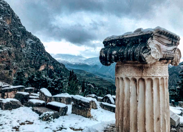 Μια μαγική σειρά φωτογραφιών από τον αρχαιολογικό χώρο των Δελφών στα λευκά δημοσιεύει στον προσωπικό του λογαριασμό στο Facebook ο σκηνοθέτης, παραγωγός, και σεναριογράφος Σπύρος Ν. Ταραβήρας που «κλείνουν» τη γοητεία του χιονισμένου τοποίου μέσα από πολλές και διαφορετικές οπτικές γωνίες κι έχουν συγκεντρώσει αμέτρητα σχόλια αλλά και πολλές κοινοποιήσεις στα social media.
