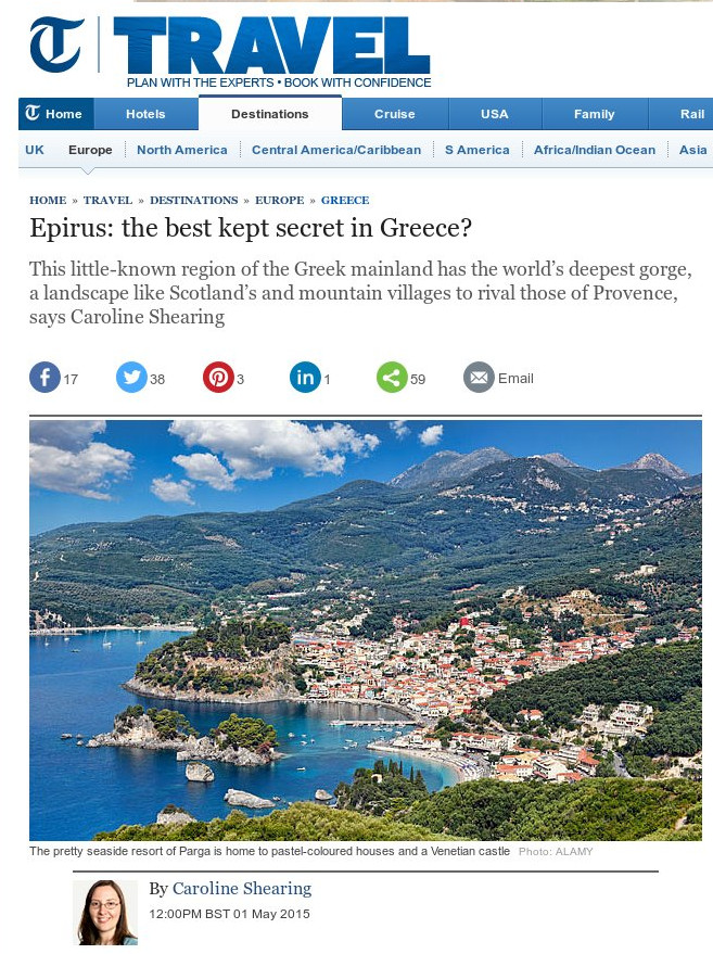 «Η Ηπειρος, η περιφέρεια με τα περισσότερα βουνά της Ελλάδας, είναι ένας ευλογημένος τόπος με πλούσιο τοπίο που θυμίζει Σκωτία στα καλύτερά της, ορεινά χωριά που ανταγωνίζονται το καλύτερα της Προβηγκίας, και τις παρθένες ακτές του Ιονίου.