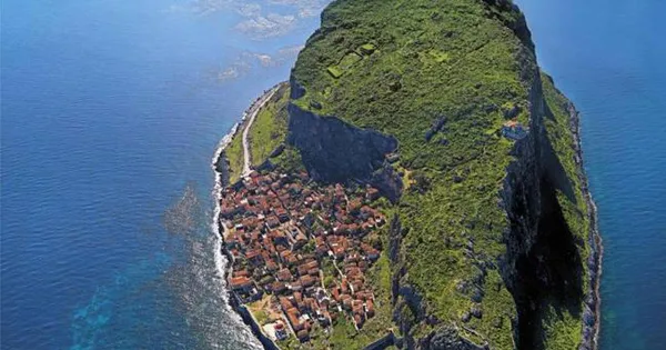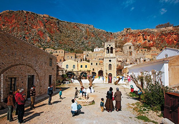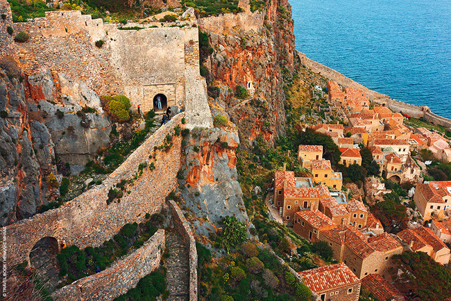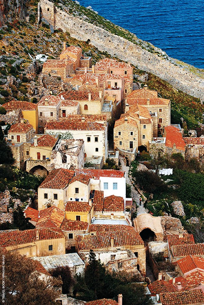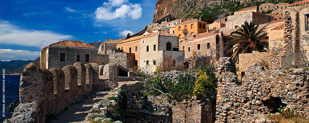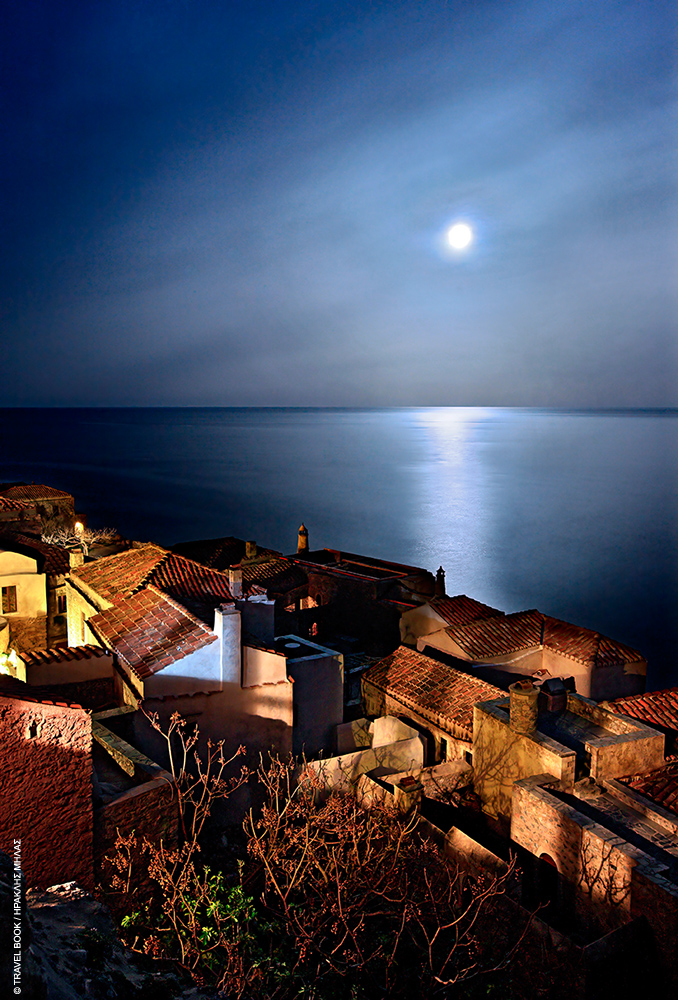 Την είπαν πόλη-άγαλμα και πόλη-μουσείο. Μέγα λάθος. Ούτε προθήκες ούτε η ακινησία του μαρμάρου υπάρχουν εδώ. Η πέτρινη πολιτεία που γέννησε τον Ρίτσο ζει ακόμη σε ενεστώτα χρόνο. Ο Μονεμβασιώτης ποιητής παρομοίασε τον βράχο με πέτρινο καράβι, ο Στρατής Μυριβήλης με πελώριο πολεμικό κράνος, ο Νίκος Καζαντζάκης με θεριό που ενεδρεύει.