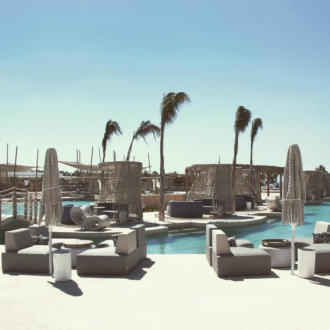 Περιμετρικά της υπάρχουν bars και ξαπλώστρες καθώς και επιλογές για φαγητό ενώ στο κέντρο της βρίσκονται VIP νησίδες με lounge αλλά και πριβέ σουίτα κάτω από την επιφάνεια όπου τα παράθυρα τους βλέπουν στο εσωτερικό της πισίνας.