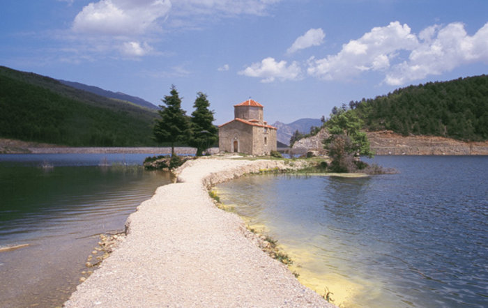 «Σήμα κατατεθέν» της λίμνης Δόξας είναι το μικρό ξωκλήσι του Αγίου Φανουρίου (ή Παλαιομονάστηρο, κτίσμα του 14ου αιώνα που εγκαταλείφθηκε τον 17ο αιώνα από μια πλημμύρα της περιοχής) που στέκεται σε μια στενή λωρίδα γης, στην καρδιά της λίμνης και καθρεφτίζεται στα, συνήθως, ακίνητα νερά.