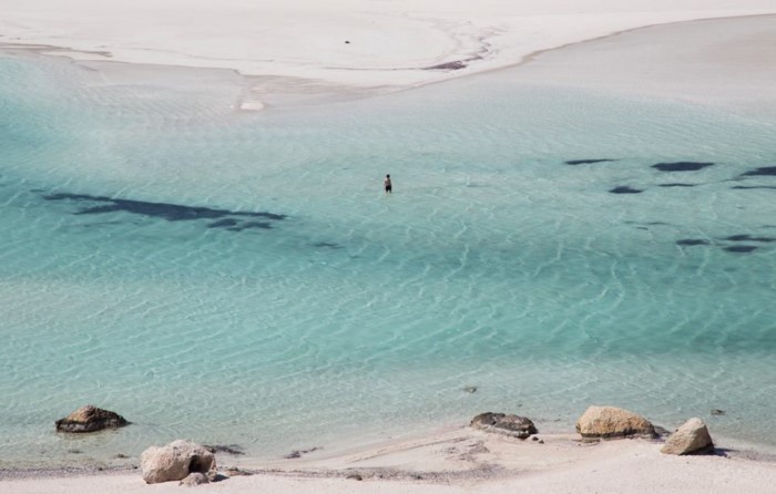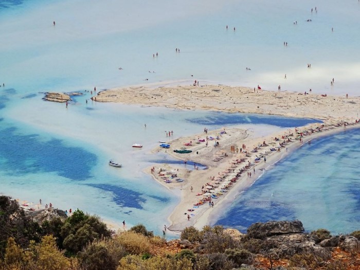 Η λιμνοθάλασσα του Μπάλου έχει άσπρη άμμο και εξωτικά λευκά, έντονα γαλαζοπράσινα και τυρκουάζ νερά.