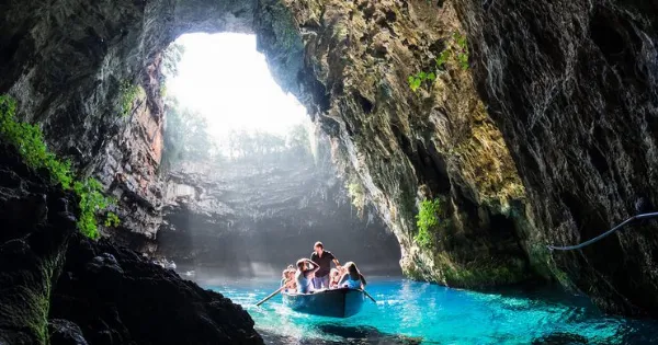 Μοναδικά χρώματα κι ένα γεωλογικό φαινόμενο παγκοσμίως σπάνιο θα συναντήσετε στη Μελισσάνη. Το λιμνοσπήλαιο βρίσκεται σε απόσταση 2 χιλ. βορειοδυτικά της Σάμης, στον Καραβόμυλο. Η φυσική είσοδος του σπηλαίου είναι κατακόρυφη (διαστάσεων 40×50 μ.) και δημιουργήθηκε από την πτώση ενός τμήματος της οροφής, πιθανότατα από κάποιο σεισμό. Η λίμνη του σπηλαίου βρίσκεται 20 μ. κάτω από την επιφάνεια του εδάφους, έχει μήκος 160 μ. περίπου και βάθος από 10 μ. έως 40 μ. Σταλακτίτες ηλικίας 20.000 χρόνων με περίεργα σχήματα στολίζουν το μεγαλύτερο τμήμα του σπηλαίου.