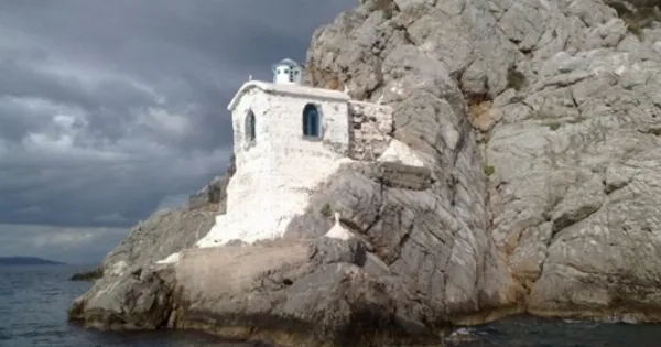 Ένα τοπίο σαν από παραμύθι με πειρατές και κουρσάρους. Το πανέμορφο, γραφικό εκκλησάκι της «Κρασοπαναγιάς», που βρίσκεται στο δυτικότερο άκρο των Μεθάνων.
