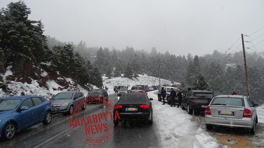 Κυκλοφοριακό χάος επικράτησε το απόγευμα της Κυριακής (5/1/2020) στην επαρχιακή οδό που συνδέει τα Καλάβρυτα με το Χιονοδρομικό Κέντρο, καθώς εγκλωβίστηκαν δεκάδες οδηγοί με τα οχήματά τους, αφού δεν είχαν αντιολισθητικές αλυσίδες.