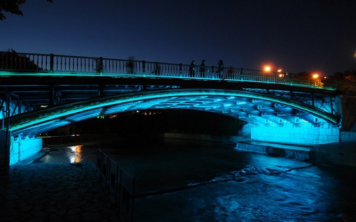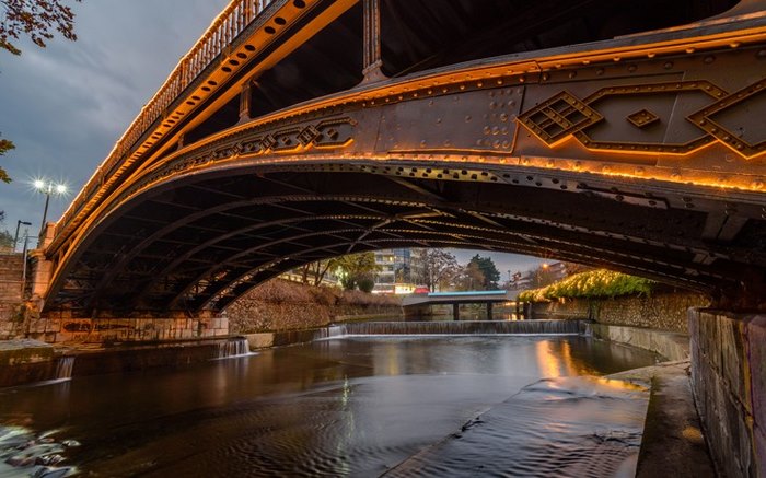 Οι όχθες του συνδέονται με δέκα γέφυρες, μισές από τις οποίες είναι για πεζούς.