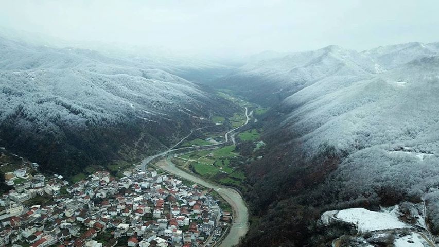 Το τοπίο ωστόσο που αποθανάτισε με τον φωτογραφικό του φακό ο Τζεμαλή Χατζή Αχμέτ, με τον Εχίνο να είναι ντυμένος στα λευκά και τα γύρω βουνά να έχουν πνιγεί από το χιόνι είναι κάτι παραπάνω από εντυπωσιακή.