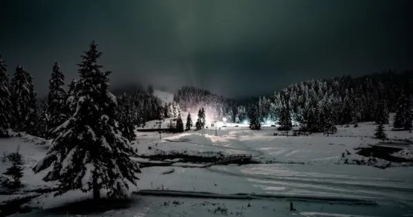 Μαγική ήταν η βραδιά στο Περτούλι στα Τρίκαλα καθώς το λευκό τοπίο υπό το φως της Πανσελήνου συνέθεσε ένα μοναδικό σκηνικό.