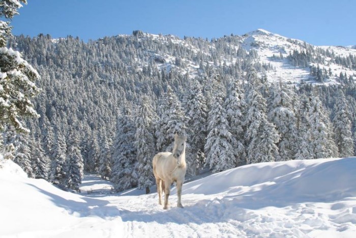Τα άλογα βόσκουν στις πλαγιές του Κόζιακα και στα λιβάδια περιμένοντας αυτούς που θα ανταλλάξουν την πίστα του σκι με μια εμπειρία ιππασίας.