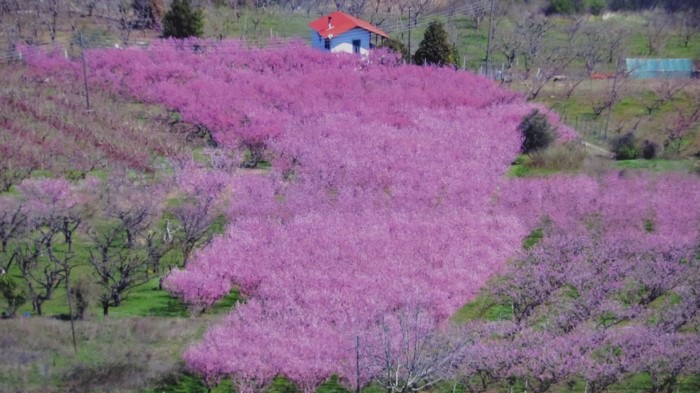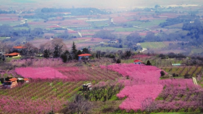 Ο εύφορος κάμπος της Ημαθίας μεταμορφώνεται σε μια απέραντη ροζ θάλασσα, από τις χιλιάδες ανθισμένες ροδακινιές!