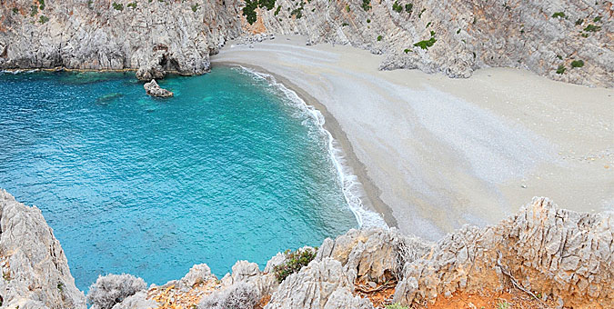Κρυστάλλινα νερά, απαλή άμμος και ένα ξακουστό ηλιοβασίλεμα που βάφει πορτοκαλί και κόκκινα τα νερά του Λιβυκού, 50 χιλιόμετρα νότια του Ρεθύμνου.