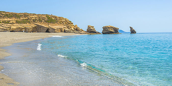 Το μικρό ακατοίκητο νησάκι απέναντι από την Ιεράπετρα έχει μια παραλία βγαλμένη από τα όνειρά μας, με εκατομμύρια χρωματιστά κοχύλια εκεί που οι άλλες έχουν βότσαλα, και νερά τόσο σμαραγδένια που μοιάζουν ψεύτικα.