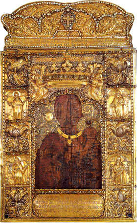Όταν πλησίασαν, βρήκαν την εικόνα της Παναγίας, που σύμφωνα με την εκκλησία, είχαν μεταφέρει άγγελοι. Οι δύο μοναχοί θεώρησαν την αποκάλυψη της Παναγίας, μέσω της εικόνας, ως σημάδι και αποφάσισαν να φτιάξουν στο σημείο που την βρήκαν ένα κελί.