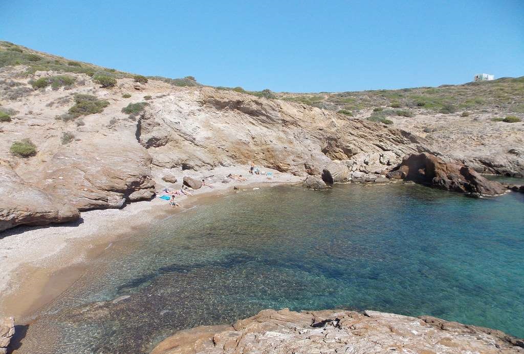 Λίγο πιο νότια από την παραλία των Αγίων Αποστόλων, υπάρχει ένας κολπίσκος με νερά γαλαζοπράσινα από το χρώμα των πεύκων που φτάνουν μέχρι την αμμουδιά. Αν και η πρόσβαση είναι εφικτή μόνο με σκάφος ή περπάτημα μέσα από ένα μικρό φαράγγι, αξίζει τον κόπο και θα σας αποζημιώσει για την… περιπέτεια.