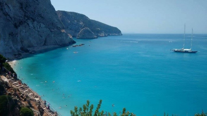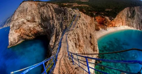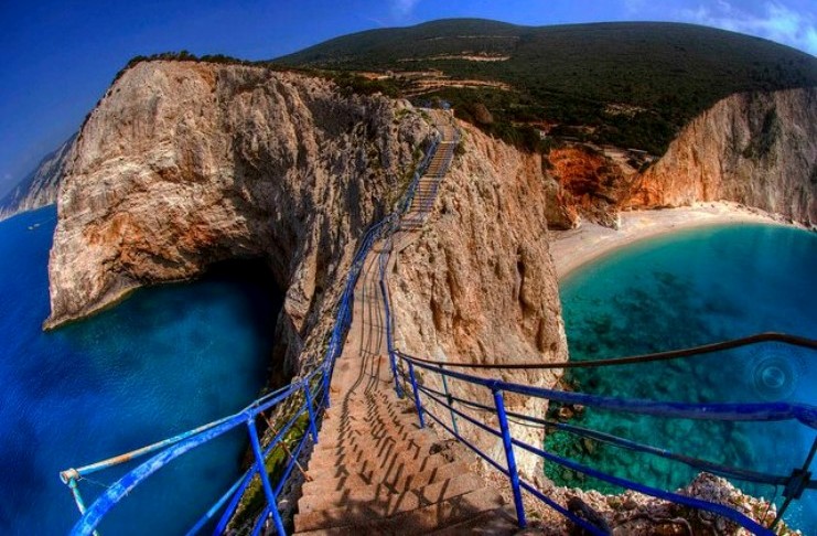 Αλλά για να φτάσεις σε αυτή θα πρέπει να κατέβεις 100 σκαλοπάτια σκαλισμένα στα βράχια. Σκαλοπάτια πολυφωτογραφημένα γιατί μία φωτογραφία εκεί έχει για φόντο όλο το υπερθέαμα του Ιονίου.