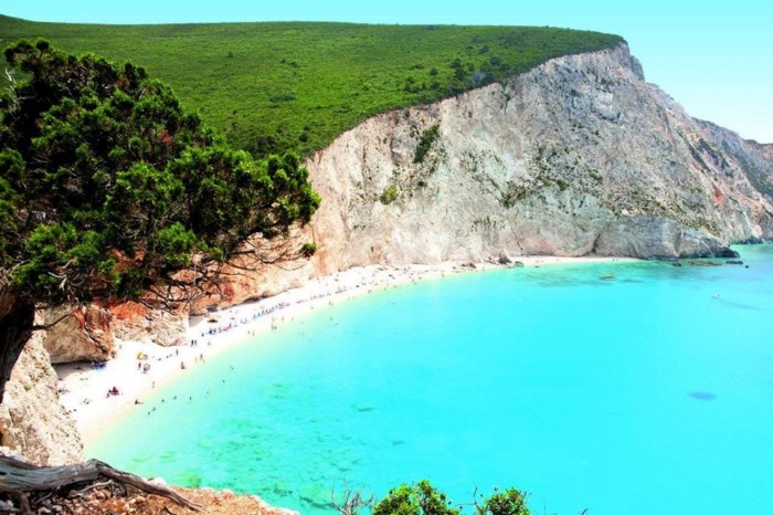 Λευκοί κάθετοι βράχοι που προκαλούν δέος. Το Πόρτο Κατσίκι είναι μια παραλία απέραντη με μικρά βότσαλα που λαμπυρίζουν κάτω από το φως του ήλιου.