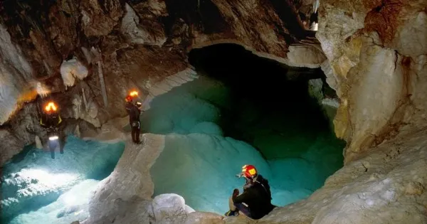 Ένα κάθετο φυσικό τοίχωμα ύψους 9 μέτρων εμπόδιζε τους επισκέπτες να διεισδύσουν περαιτέρω στη σπηλιά, που έκρυβε έναν μοναδικό φυσικό θησαυρό.