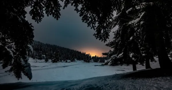 Η φυσική ομορφιά του τοπίου στο Περτούλι είναι ούτως ή άλλως καθηλωτική, αλλά το βράδυ της Πανσελήνου όλες οι συνθήκες συμμάχησαν για να δημιουργήσουν εικόνες ανυπέρβλητης μαγείας. Η λεγόμενη Παγωμένη Πανσέληνος του Δεκεμβρίου, με ένα τεράστιο φεγγάρι, έλαμψε στον νυχτερινό ουρανό πλημμυρίζοντας με φως το ολόλευκο βουνό με τα έλατα.