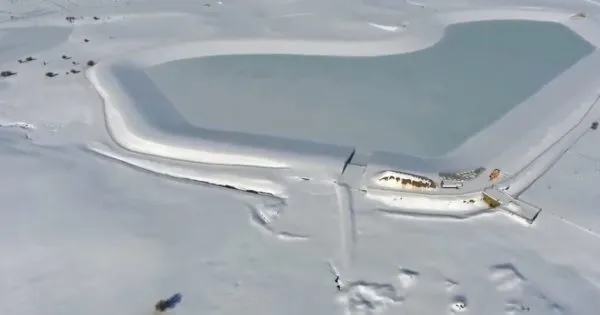 Η πανέμορφη λίμνη στο Οροπέδιο του Ομαλού φαίνεται από ψηλά να παίρνει το σχήμα καρδιάς και είναι η πρώτη παγωμένη λίμνη που έχουμε δει σε τόσο μεγάλη έκταση στην περιοχή Χανίων.