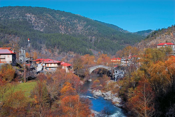 Ένας ποταμός με δύο ονόματα, Ασπροπόταμος ή Αχελώος, «ευλόγησε» την ομώνυμη περιοχή, στην Πίνδο. Βαθιές χαράδρες, άγρια βλάστηση και δεκάδες πηγές συνθέτουν το τοπίο. Από τις εικόνες που έχουν χαραχτεί ανεξίτηλα στη μνήμη μας είναι αυτή της Μονής Δολιανών.