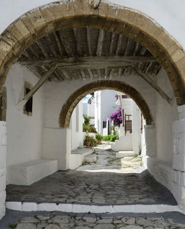 Γραφικά σοκάκια, λιλιπούτεια μεζεδοπωλεία και γλυκοπωλεία με σπιτικά παγωτά, μικρές πλατείτσες και στριμωγμένα άσπρα σπίτια παντού. Φυσικά δεν κυκλοφορούν αυτοκίνητα (άντε να συναντήσεις κανένα γαϊδουράκι), γεγονός που συμβάλει στο να απολαύσεις την βόλτα σου και το τοπίο ακόμα περισσότερο.