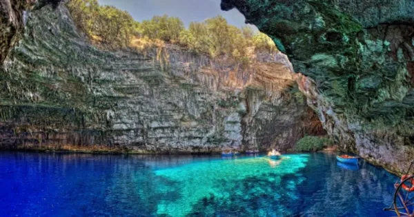 Μέσα σε αυτά και ένα ελληνικό νησί, ή ορθότερα η κρυφή λίμνη μέσα με τα καταγάλανα νερά μέσα στη σπηλιά. Πρόκειται για το λιμνοσπήλαιο Μελισσάνη στην Κεφαλλονιά, το οποίο κάθε χρόνο γίνεται πόλος έλξης χιλιάδων τουριστών.