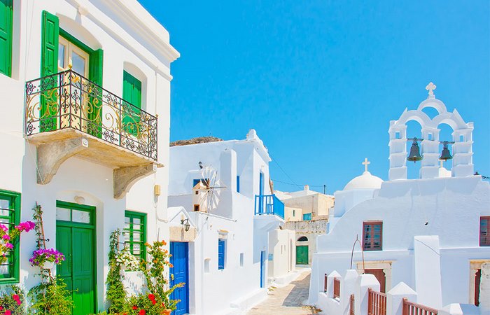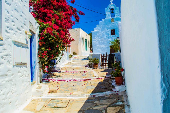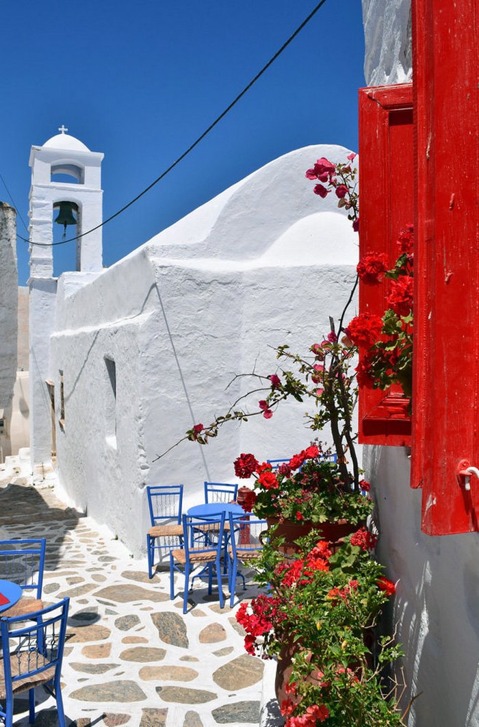 Η Χώρα χτισμένη στο κέντρο του νησιού ανάμεσα σε μικρούς λόφους αποτελεί για πολλούς την ομορφότερη χώρα την Κυκλάδων.