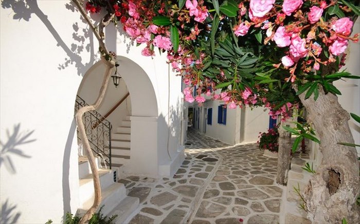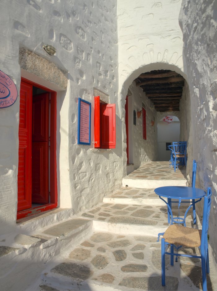 Τα μικρά κατάλευκα σοκάκια της, τα στολισμένα με ανθισμένες βουκαμβίλιες παραδοσιακής κυκλαδικής αρχιτεκτονικής σπίτια της, τα παραδοσιακά καφενεία αλλά και οι σκιερές πλατείες της προσκαλούν τον επισκέπτη να αφεθεί στη μαγεία της.