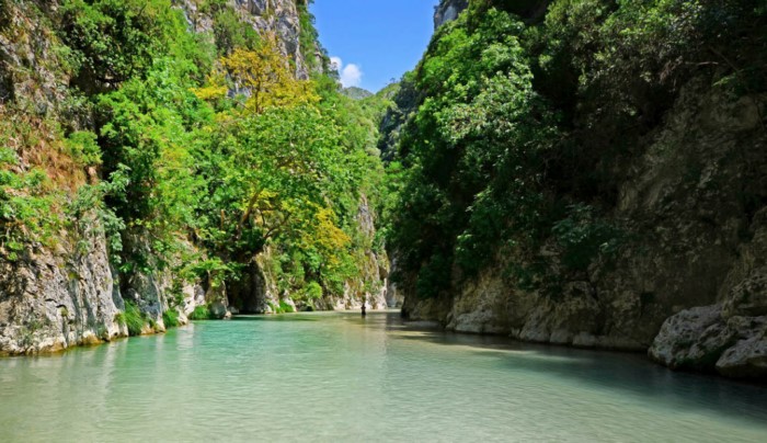 Αιωνόβια πλατάνια τον σκιάζουν. Θεόρατοι κατακόρυφοι βράχοι στέκονται φρουροί στο διάβα του. Χιλιάδες πουλιά δοξάζουν την ομορφιά του ξορκίζοντας έτσι την «μυθική θλίψη» στο όνομα της χαράς της ζωής!