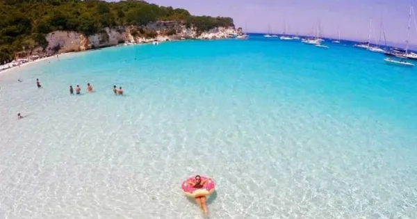 Τα τιρκουάζ νερά στις παραλίες των Αντίπαξων θα εντυπωσιάσουν μικρούς και μεγάλους.