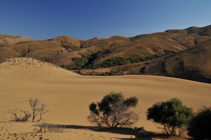 Εδώ το τοπίο είναι καθαρά αφρικανικό και ξαφνικά βρίσκεσαι στη μέση μιας απρόσμενης ερήμου, μιας μικρογραφίας της Σαχάρας, τη δημιουργία της οποίας οι επιστήμονες αδυνατούν ακόμη να ερμηνεύσουν.