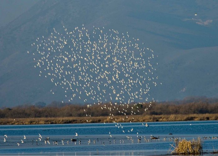 Ολόγυρα το τοπίο συναρπάζει με τα δεκάδες είδη πουλιών να φτερουγίζουν πάνω από τα κεφάλια των επισκεπτών και να βουτούν με θεαματικό τρόπο στα ρηχά νερά για ανεύρεση τροφής.