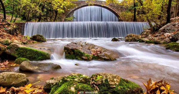 Ένα πέτρινο, μονότοξο γεφύρι, που χρονολογείται από τον 16ο αιώνα, είναι ακριβώς μπροστά από τον καταρράκτη, που πέφτει με δύναμη από ύψος 12 μέτρων.