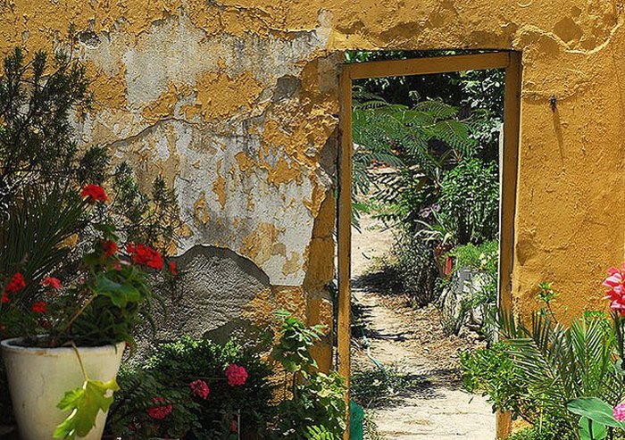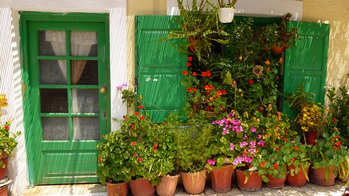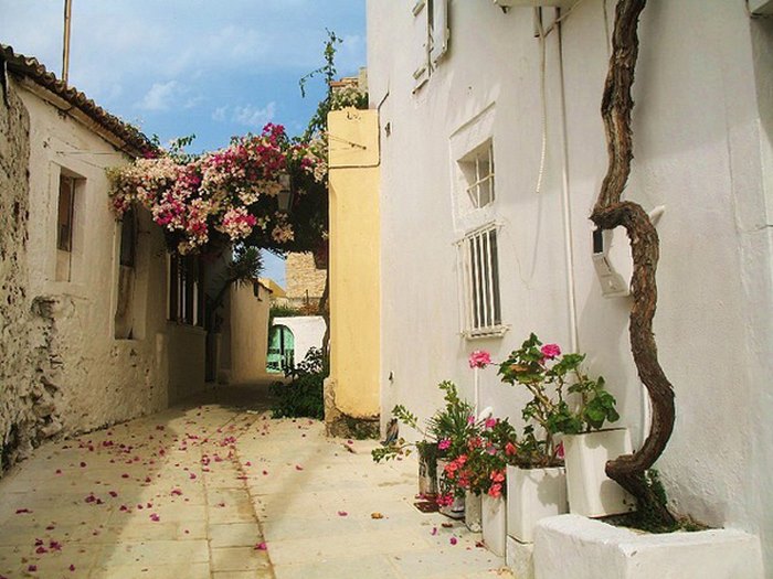 Οι αυλές των σπιτιών αποτελούν από μόνες τους λόγο για να επισκεφτεί κανείς το χωριό. Μεγάλες κι ολάνθιστες, μοιάζουν με όαση.