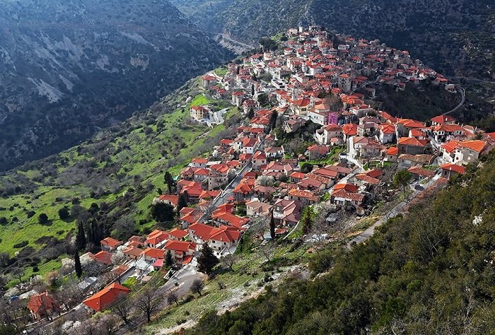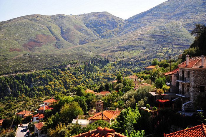 Βρείτε ένα παλιό πεντοχίλιαρο του 1984, από εκείνα με τον Κολοκοτρώνη, και γυρίστε το ανάποδα. Αυτό που θα δείτε είναι ένα όμορφο χωριό, την Καρύταινα.