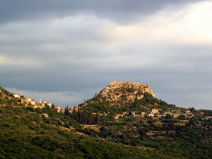 Το κάστρο της, είναι χτισμένο στα ερείπια της αρχαίας πόλης Βρένθης (4ος π.χ αι.), και χτίστηκε από το Γάλλο ηγεμόνα Γοδεφρείγο ντε Βριγιέρ στα μέσα του 13ου αιώνα, ο οποίος ήθελε να διαφεντεύει τον κάμπο της Μεγαλόπολης και τους εμπορικούς δρόμους ανάμεσα σε Ανατολική και Δυτική Πελοπόννησο.
