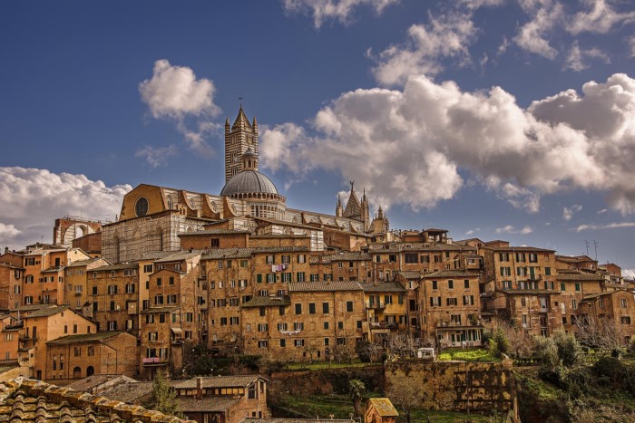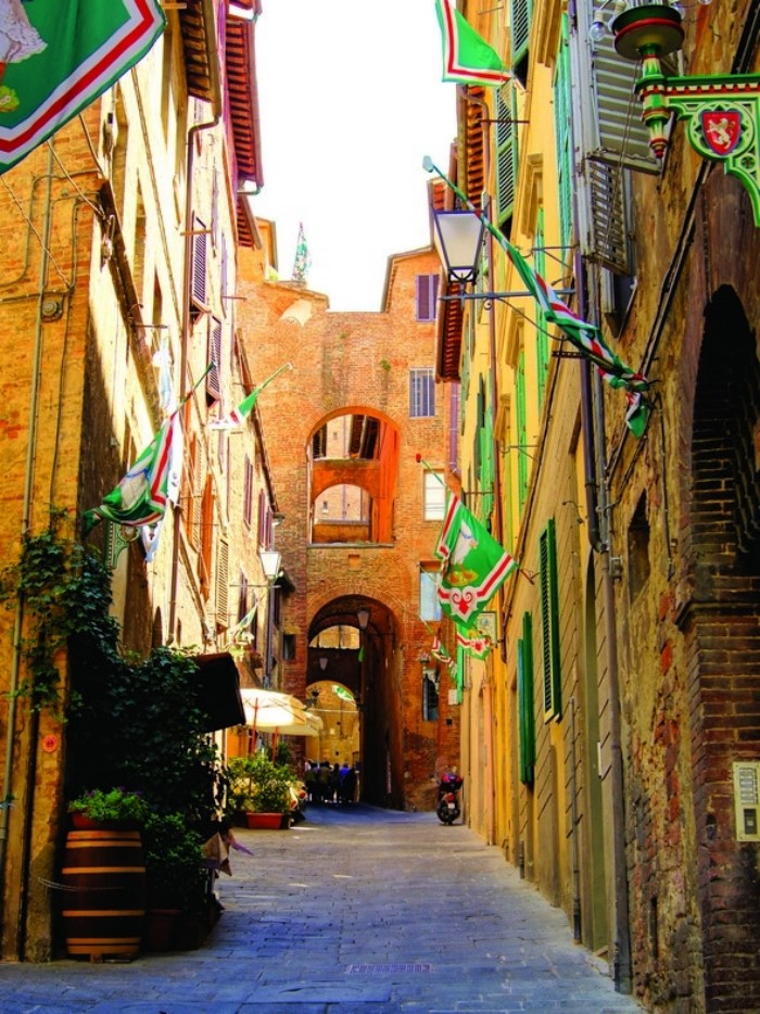 εντυπωσιακή Σιένα (46 χλµ. από το Κιάντι). Εξαιρετική µικρογραφία µεσαιωνικής πόλης, µε την αµφιθεατρική Piazza del Campo να κλέβει την παράσταση. Εδώ πραγµατοποιείται τον Ιούλιο και τον Αύγουστο, η πιο εντυπωσιακή αναπαράσταση ιπποδροµιών µεταξύ των 17 κοντράντων (γειτονιές) της πόλης, το θρυλικό Palio.