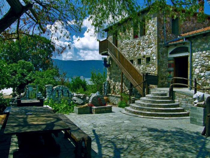Στον μοναδικό ξενώνα του νησιού λειτουργεί και καφέ με απεριόριστη θέα στη λίμνη.