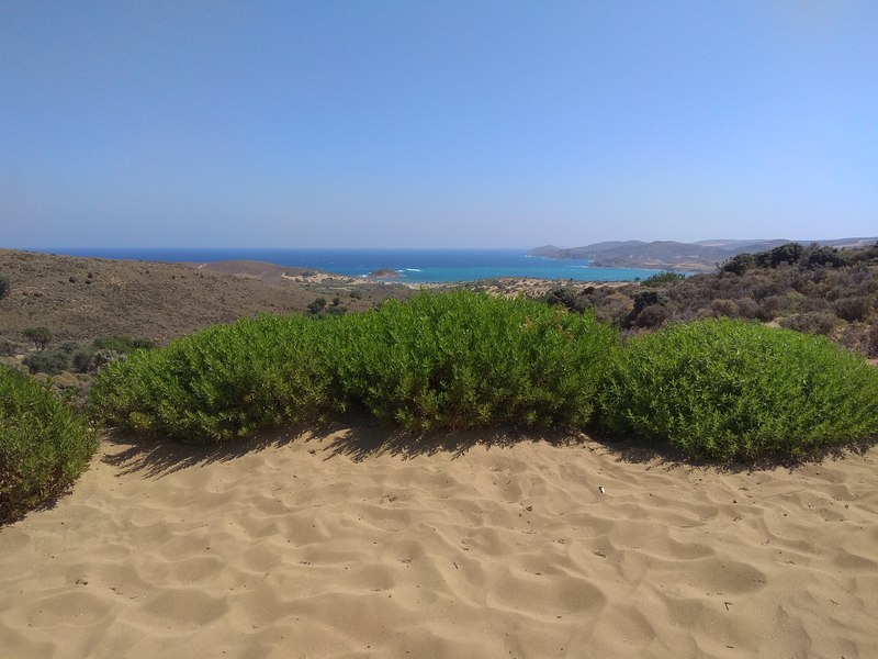 Αν ωστόσο τις επισκεφτείς εκτός τουριστικής σεζόν -δηλαδή, για τα δεδομένα της Λήμνου, από τέλος Αυγούστου και μετά- μπορεί να βρεθείς μόνος σε αυτό το σχεδόν απόκοσμο τοπίο. Παρέα μόνο με τις θαρραλέες αγριελιές, τα αγριόκρινα, το θυμάρι και με τους στίχους του «Α horse with no name» των America να παίζουν στο μυαλό σου. «Στην έρημο μπορεί να θυμηθείς το όνομά σου/γιατί εκεί δεν υπάρχει κανένας να σε πληγώσει». Τότε θα γίνεις ανάλαφρος σαν έναν κόκκο άμμου, αφήνοντας τον άνεμο να σε ταξιδέψει στην ανοιχτωσιά ενός νησιού όπου δεν σταματάει ποτέ να φυσάει.