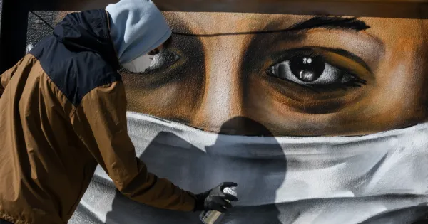 Ο 16χρονος S.F εμπνέεται από την πανδημία του κορωνοϊού και δημιουργεί το γκράφιτι της Αθήνας στην εποχή της πανδημίας. Ο S.F ανέβηκε στην ταράτσα του σπιτιού του επί της οδού Βουλιαγμένης και ζωγράφισε με τον δικό του τρόπο τον κορωνοϊό.