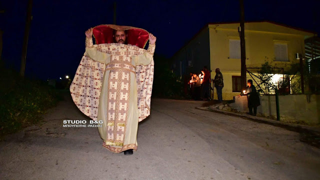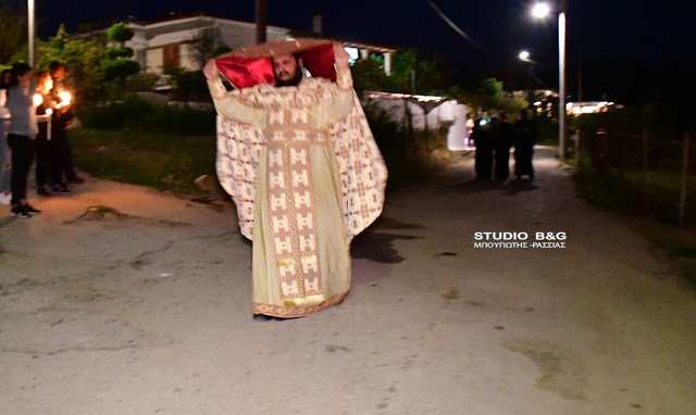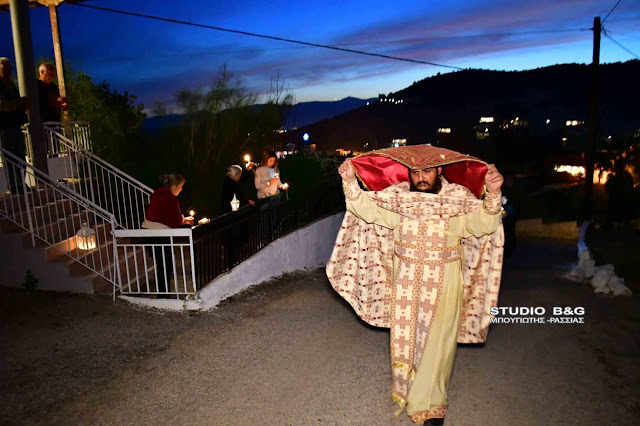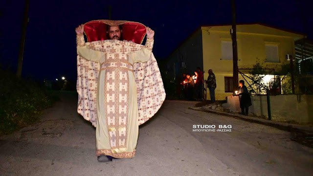Η εφευρετικότητα όμως του εφημέριου του Ναού π. Χρήστου Ιωανίδη και του εκκλησιαστικού συμβουλίου του ναού, επέτρεψε ώστε να γίνει και η περιφορά του επιταφίου στο χωριό και μάλιστα τηρώντας τα μέτρα για την αποφυγή της διασποράς του κορωνοϊού.